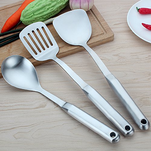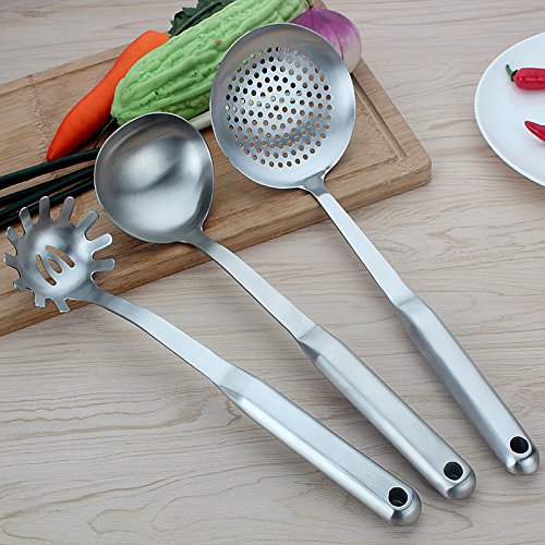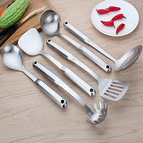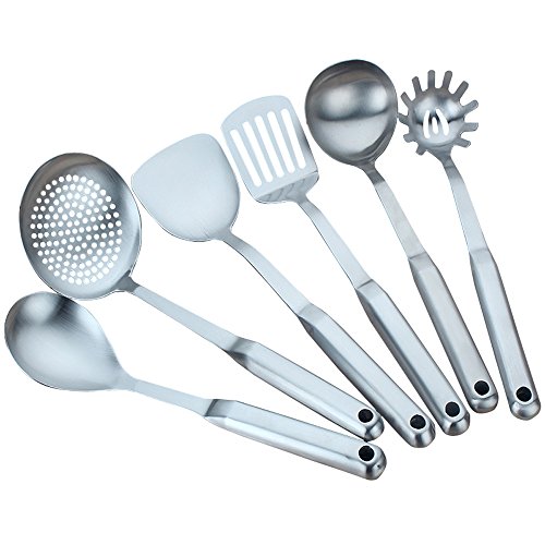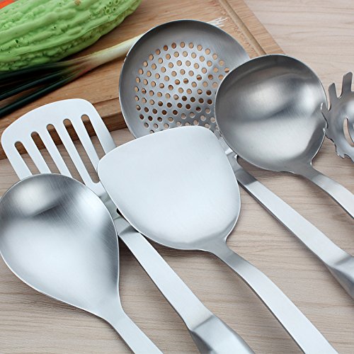 Studio : BESIC Publisher : BESIC Product Description BESIC Stainless Steel Flatware Rice Serving Spoons Kitchen Cooking Utensils Set Measurements: -Steel Turner: L 14.5 x W 3.5 inch -Soup Spoon: L 14 x W 3.5 inch -Slotted Turner: L 14.5 x W 3 inch -Spaghetti Server: L 13 x W 3 inch -Rice Spoon: L 13 x W 3 inch -Spoon Skimmer: L 13 x W 4.5 inch