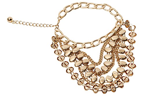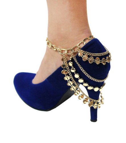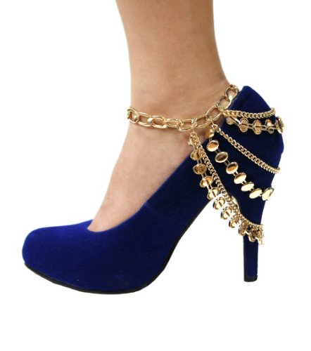 -. Binding : Jewelry -. Brand : HW Anklet Collection -. Department : Womens -. Feature : Metal based goldtone link anklet chain; 10 inches long plus extension; lobster claw clasp / Three groups of chains of varying lengths to drape over the heel of your shoe / Chains with shiny goldtone beads on them / Drop is approximately 4 inches long / This listing is just for one anklet chain and does not include boot/shoe in picture -. ProductGroup : Jewelry -. ProductTypeName : FASHIONNECKLACEBRACELETANKLET -. Title : 1 Goldtone 3 Tier Shiny Beads Anklet Heel Chain for Shoe Boot