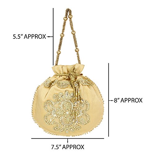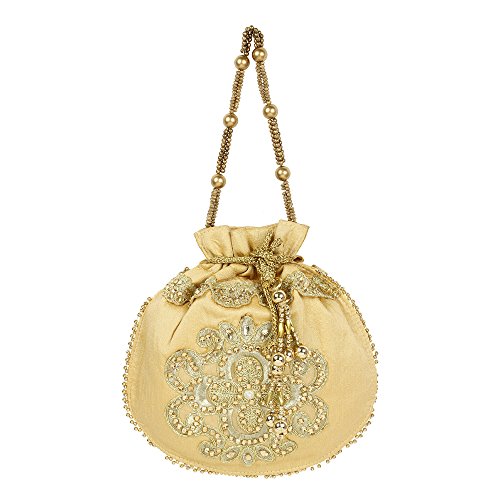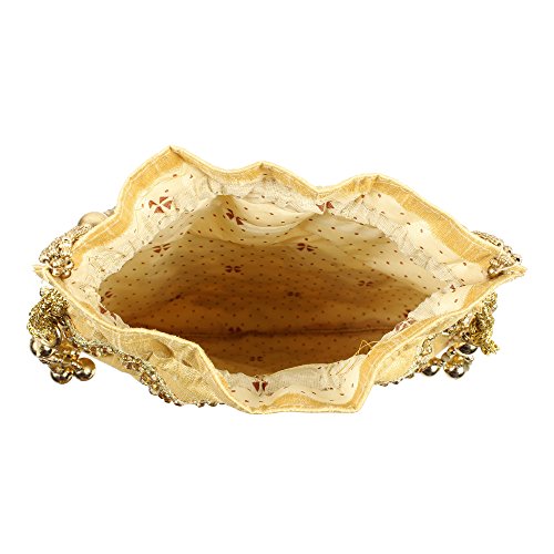 (Purse Collection)/Accessories/Handbags/DIRECT FROM USA/Purse Collection Floral Shape Beautiful Drawstring Gold Colour Potli Purse For Womens