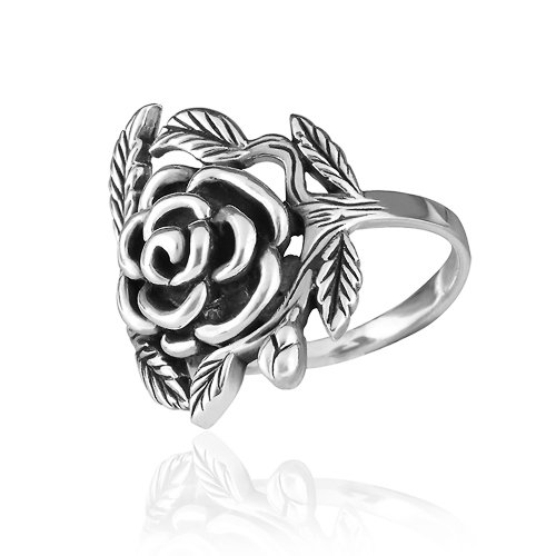 -. Title : 925 Sterling Silver 20 mm Vintage Style Detailed Rose with Leaves Ring - Nickel Free
