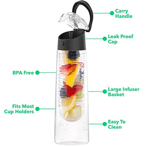 Studio : Vremi Publisher : Vremi Binding : Misc. Product Description Mix it up with the Vremi "DJ Fresh Mix" Fruit Infuser Water Bottle and enjoy the freshest of the fresh. Give this water bottle any flavor request to serve up a mind blowing fruit infusion. Make your own customized mix by adding any combination of fresh lemons, blueberries, cucumbers, or mint into the reusable infuser filter. Then pop open the flip top lid, sit back, and savor the flavor. Vremi "DJ Fresh Mix" Fruit Infuser Details Care - 24 ounce capacity water bottle (700ml)