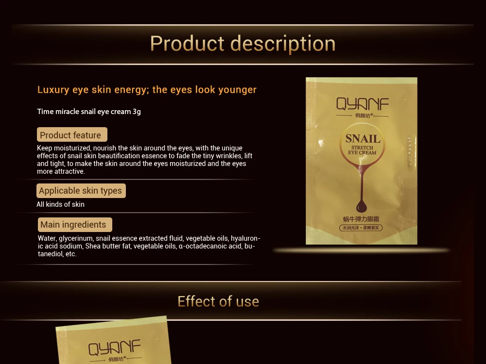 QYANF Whitening Snail eye Cream beauty Skin care Moisturizing Anti-Puffiness Anti-Aging Dark Circle Lift Firming Cream Trial Pack:5PCS