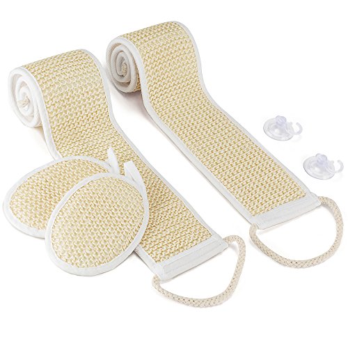 BERGMAN KELLY Exfoliating Sisal Back Scrubber and Pad (4 Pack) - Stronger Than Loofah