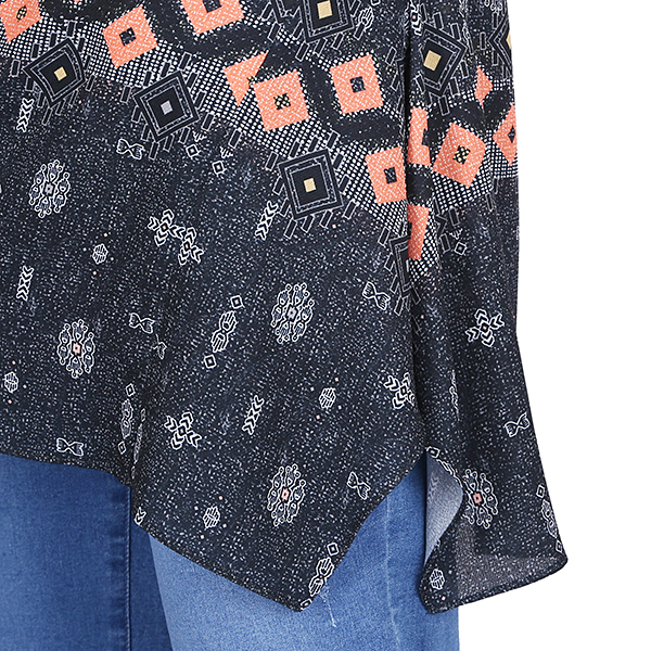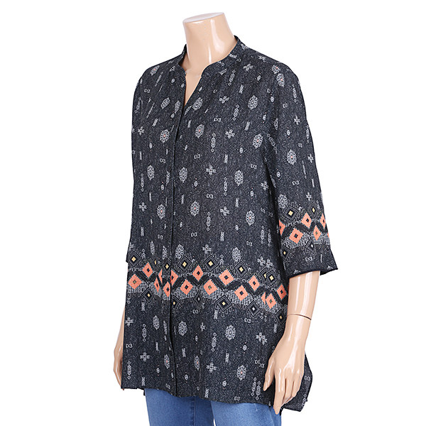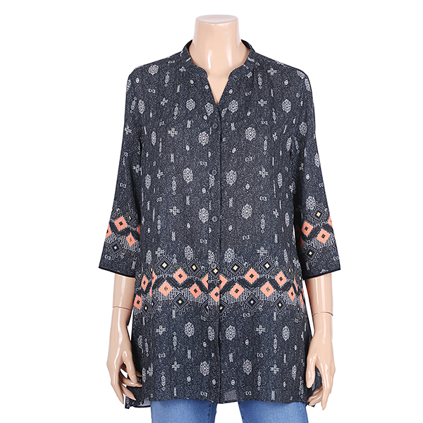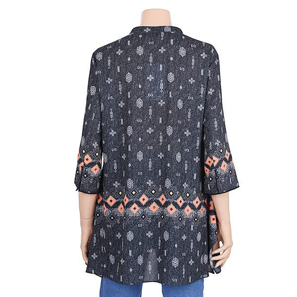 이 제품은 A라인으로 멋스러운 패턴과 구김없고 편안한 시원하게 입을 수 있는 하프 블라우스 입니다
