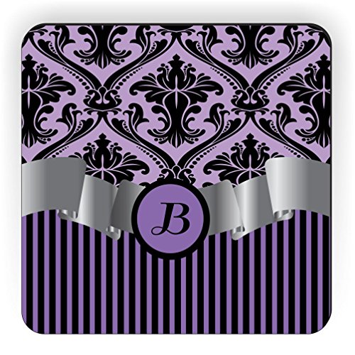 Rikki Knight Letter "B" Initial Purple Damask and Stripes Monogrammed Design Square Fridge Magnet