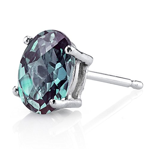 Gemstones: 2 pieces Lab Created Alexandrite, Oval Cut, 7 x 5 mm, 2.00 carats, Color changes hue depending on the light around it- from teal Green to Indigo to Purple to Pink, with Brilliant Sparkle. Earrings: 0.86 grams pure 14k White Gold with 14k stamp. Earrings feature exceptional Design, Craftsmanship and finishing. Perfect gift for Mothers Day, Birthdays, Valentines Day, Graduation, Christmas or just about any other occasion. Money Back Guarantee. Includes a Signature Gift Box. Style E18622Feature