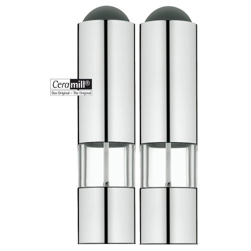 -. Feature : Inhalt: 1x Salzmühle, 1x Pfeffermühle, jeweils inklusive 6 Batterien / Material: Cromargan® Edelstahl Rostfrei 18/10, Acrylglas / Cromargan® Edelstahl Rostfrei 18/10 ist formstabil, unverwüstlich, geschmacksneutral, beständig gegen alle Speisesäuren, pflegeleicht und spülmaschinenfest / Mahlwerke aus Keramik sind härter als Stahl und zudem abriebs- und korrosionsfrei / Größe: Höhe 21cm / Mit Beleuchtung