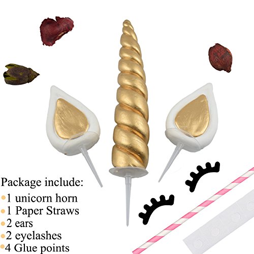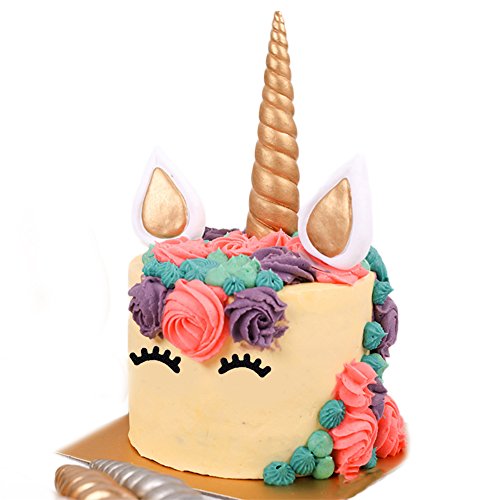- -The whole set of this cake topper kit includes 1 unicorn horn, 2 ears and 2 eyelashes, perfect decorations for cake of 8 to 10 inch (Cake is not included)