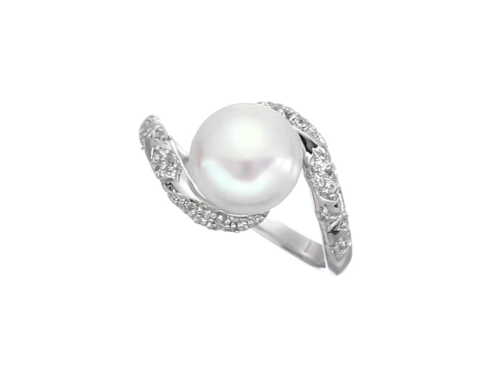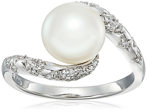 Sterling Silver Freshwater Pearl and White Topaz Swirl Ring, Size 7