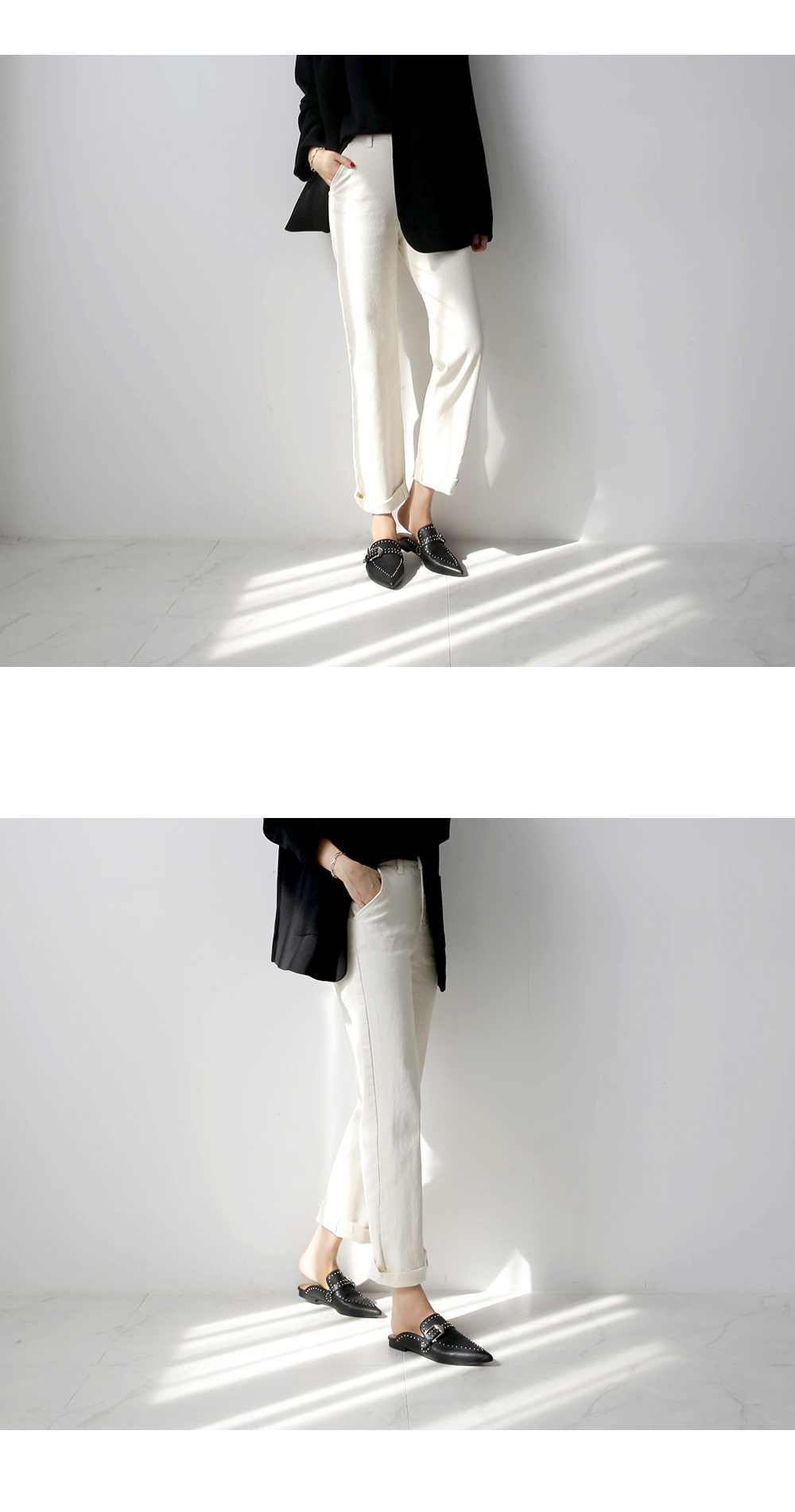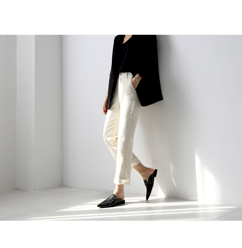 라인을 따라서 장식된 스터드가 슈즈의 밋밋함을 덜어주고 데일리룩의 포인트가 되어줍니다.