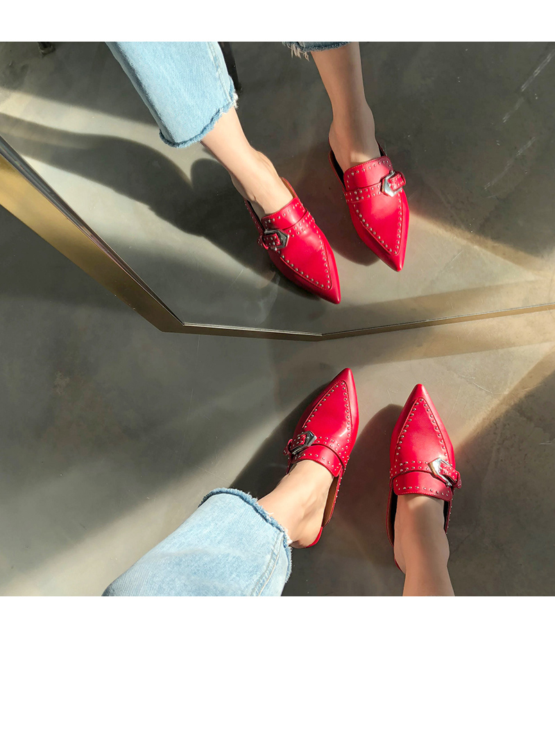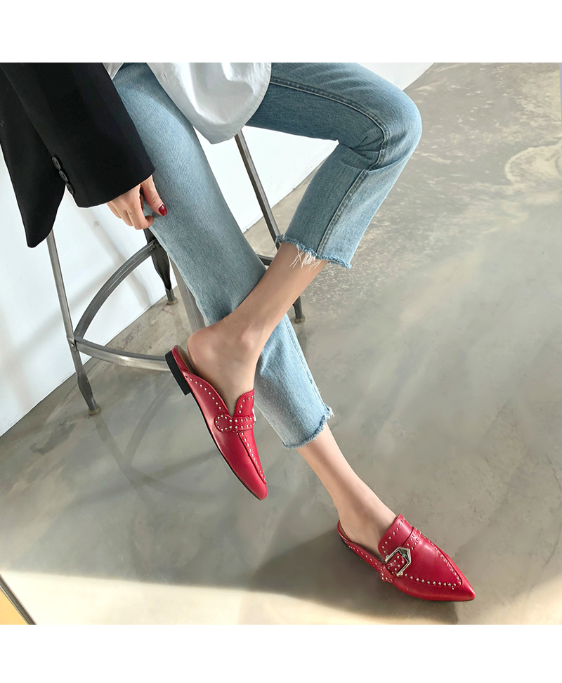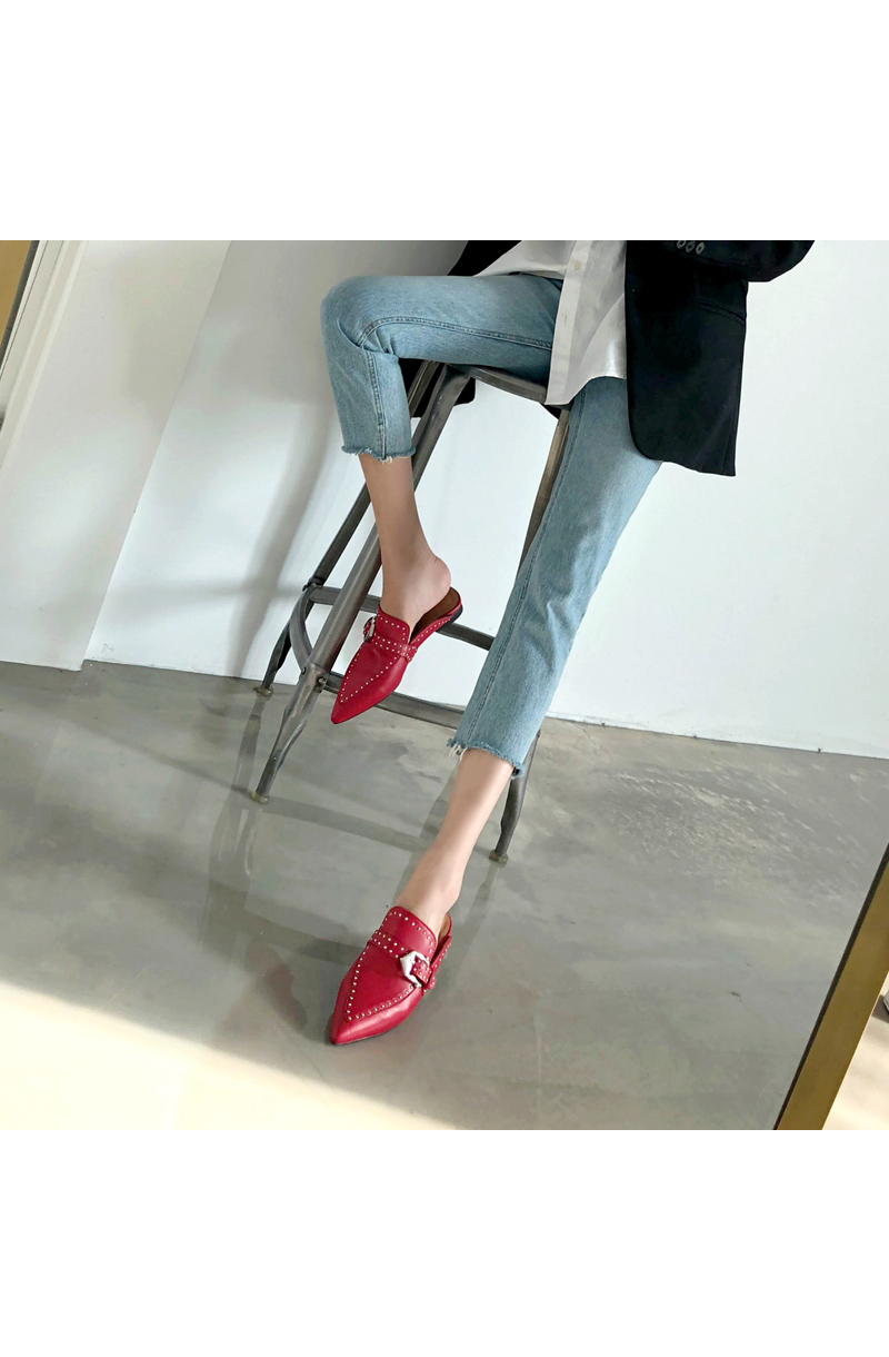 스틸레토 쉐입의 비비드한 색감이 매력적인 뒷꿈치 쿠셔닝의 편안한 착화감을 자랑하는 페이크 소가죽 데일리 블로퍼입니다.