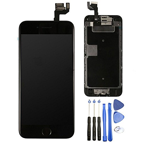 iPhone 6S 4.7 Inch LCD Display Screen Replacement Touch Digitizer Full Assembly with Home Button, Earpiece, Front Camera, 3D Touch (Without Touch ID) (Black)