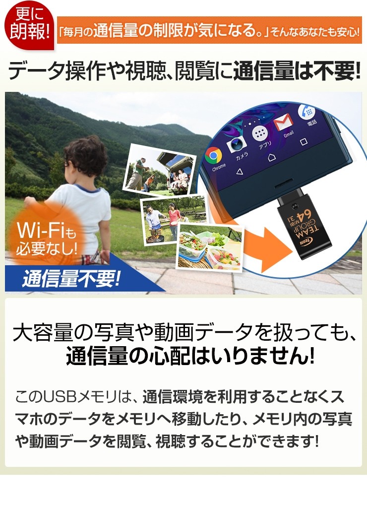 ●USB Type-C対応USBメモリ!●大容量メモリ64GB!●短時間で転送できる、USB3.1(Gen1)!●紛失を防ぐ360°回転キャップ!●パソコンとスマホのデータを相互に受け渡しできる!●3つの保護(防水性、防塵性、耐衝撃性)機能付き!デジキン