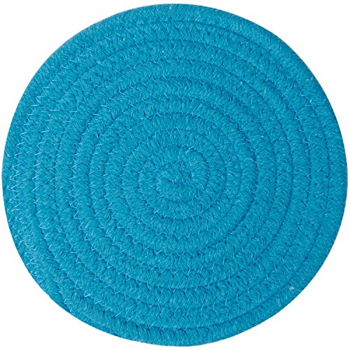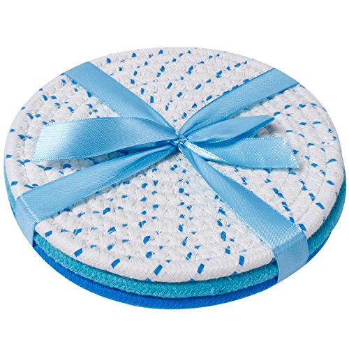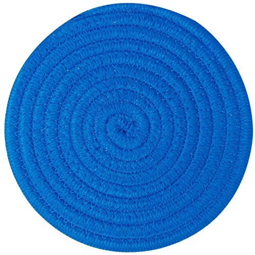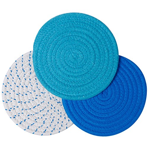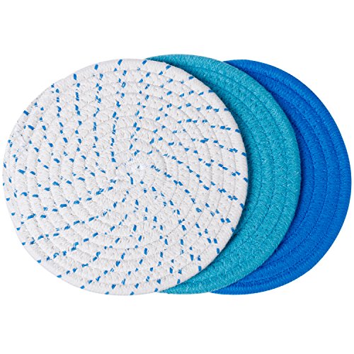100% Cotton Thread Weave Pot Holders, Hot Pads, Pot Holders, Spoon Rest, Jar Opener & Coasters, For Cooking and Baking, Diameter 7 Inches, Round, Set of 3, Blue Set