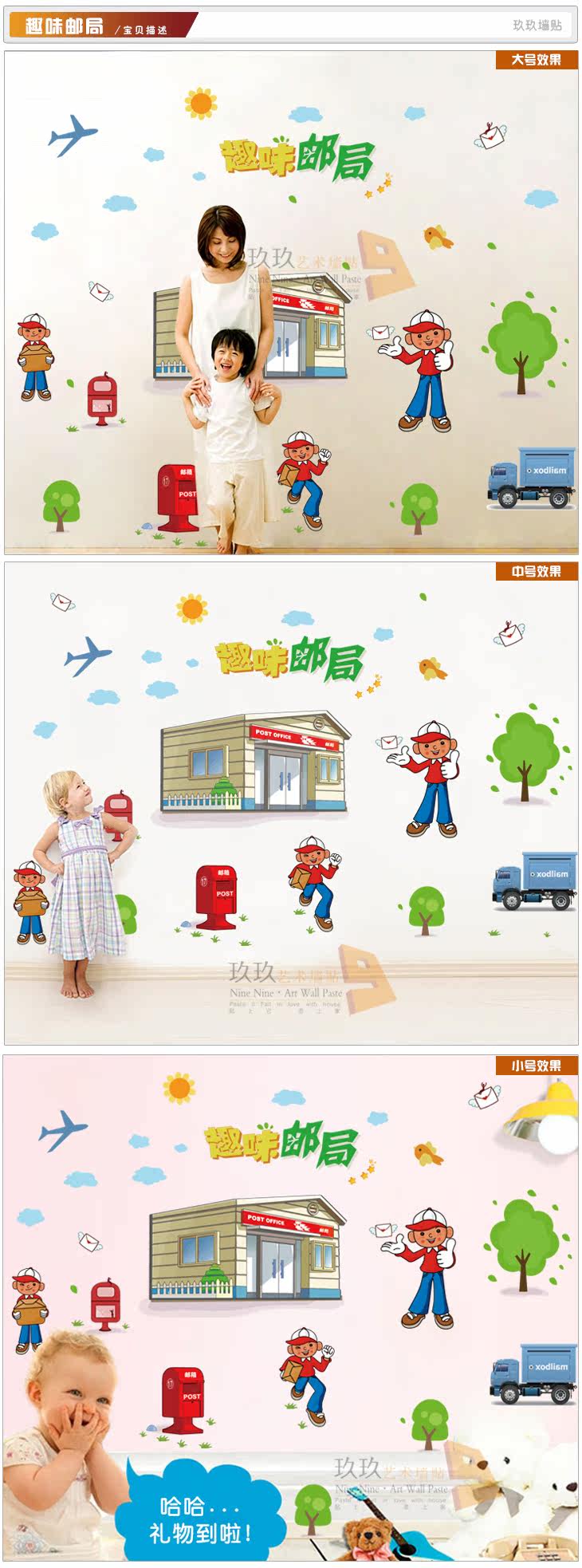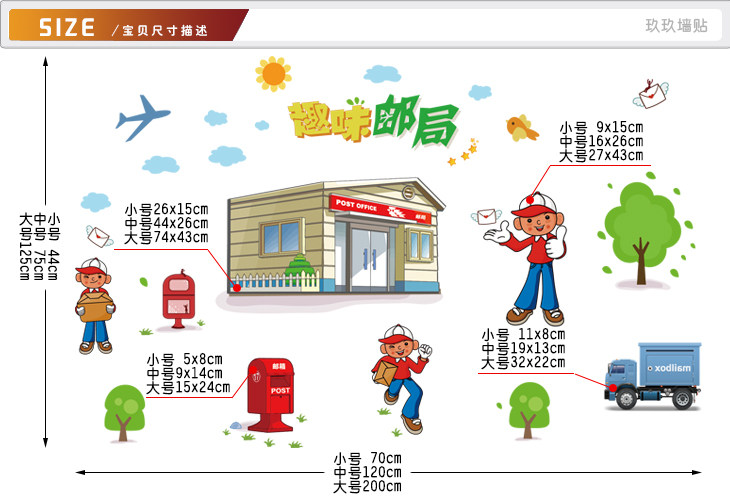 墙贴幼儿园卡通趣味过家家邮局邮递员信封小房子角色扮演贴纸贴画