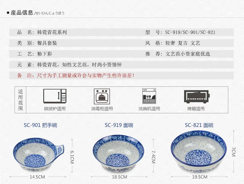 韩国进口陶瓷碗汤碗大面碗韩瓷饭碗餐具套装碗瓷碗