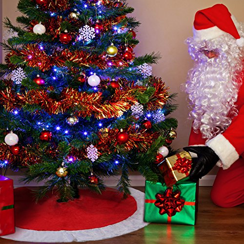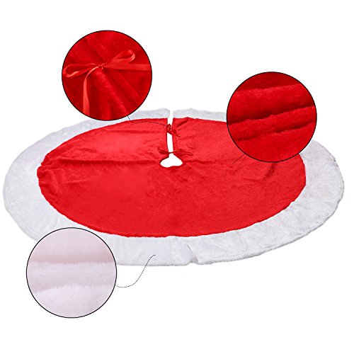Material: large Christmas tree skirt is made from good quality plush, comfortable, soft and durable; Color: red and white