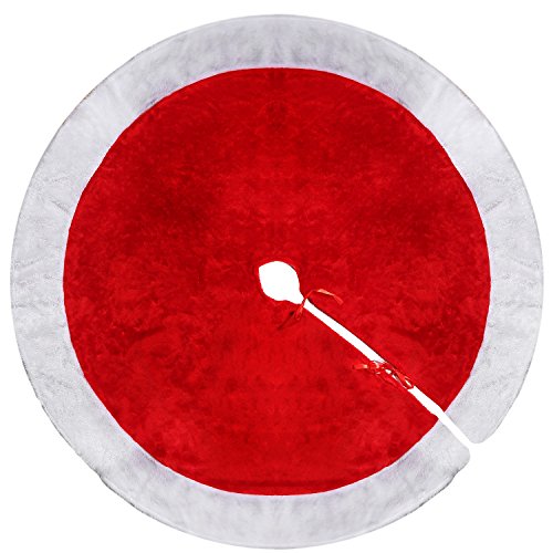 Pangda 48 Inch Christmas Red Tree Skirt with White Trimmed Large Tree Skirt for Christmas Party Decoration
