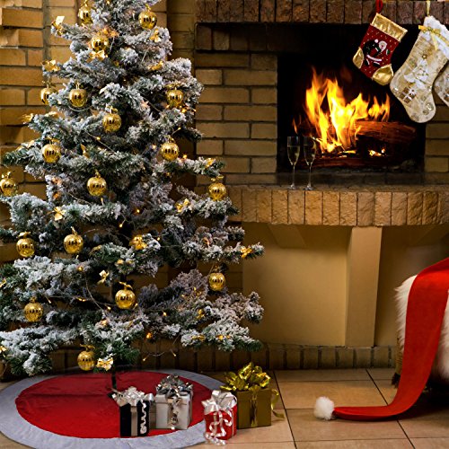 Traditional design style: holiday tree skirt features a red fluffy body with a white trim, classic red-white color matching, add sparkle to your holiday display