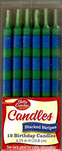 Betty Crocker Candle Stacked Stripe 12 Green & Blue Striped Candles