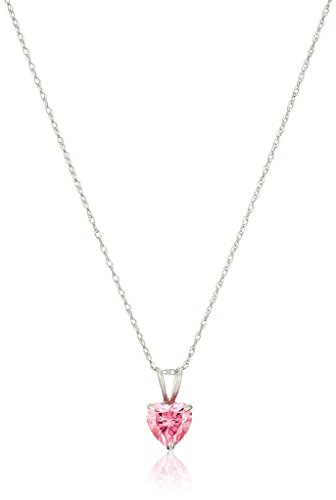 10k White Gold Heart Pink Swarovski Zirconia Pendant Necklace, 18" (3/4 cttw)