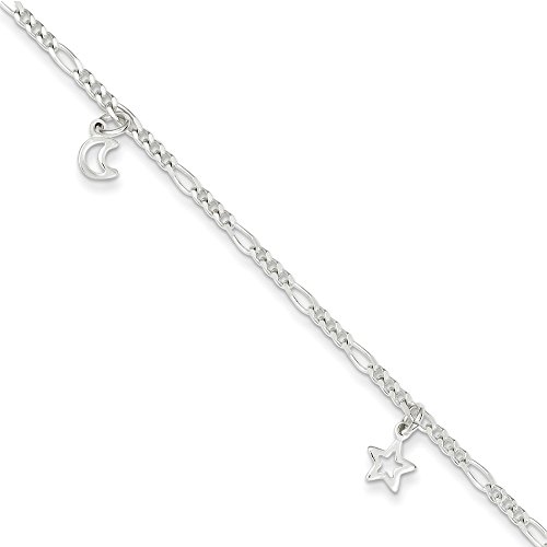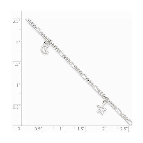 -. Title : .925 Sterling Silver 2.00MM Polished Star and Moon Anklet Bracelet With 1" Extender, 9 Inches
