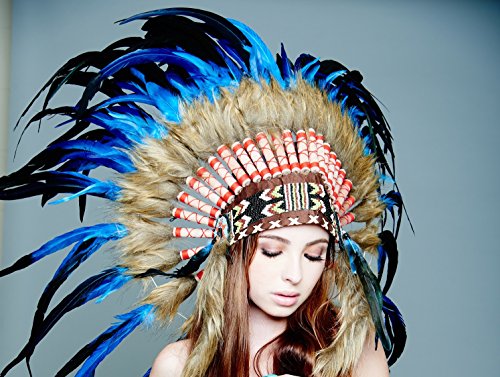 -. Brand : Kayso International Inc -. Feature : Hand Made in Indonesia By Balinese Artisans / Exquisite Native American Unisex adult Headdress is made by hand to an exceptional quality and weighs in at nearly 1 lb / Beads are threaded by hand into a forehand band and long faux fur tails are added before application to the completed headdress / The headdress is created around a real leather skull cap, one size fits most, so there is structure and breathability and long feathers plume from behind / Scrolls are hand-rolled and adorned with 3 real feathers and faux leather before application to the headdress -. MPN : SH010 -. PackageQuantity : 1 -. PartNumber : SH010 -. ProductGroup : Apparel -. ProductTypeName : CHILDRENS_COSTUME -. Size : One Size -. Title : Native American Indian Headdress Feathers Head Piece Warbonnet Short (Many Styles)