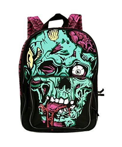 -. Feature : Durable Black Nylon Backpack with a Ghoulish Zombie P.R.Int on Front, Sides and Straps. / Large Zipper Pouch on the Front, Double Zipper on Main Opening / Back and Adjustable Straps are Padded for Comfort. / It's a Great Gift for Boys, Girls, Students, Kids, Pupils.Suitable for any Occasions, Take it on Vacation, Camping, to the Beach or any Other Outdoor Activities. / Measures approximately 17.5" long x 13" wide. Weight: 12.9 oz