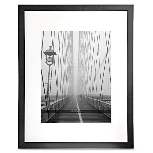 Isaac Jacobs Wood Picture Frame with Mat (Wall mounting material included) (16x20 (Matted 11x14), Black)
