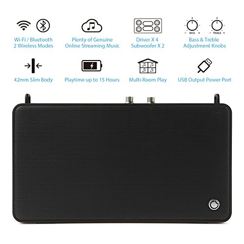 ✓[Style & Customization] Sleek elegant design to fit into any environment in your home. Super slim design 1.5 inch thick speaker makes it a portable speaker, comes with a removable leather strap to take the speaker on the go. With built in Treble and Bass Adjustment Knobs, you have the ultimate control to adjust the sounds to your style and liking. Speaker also has as built in Favorite function that is able to save up to 6 of your favorite online stations.