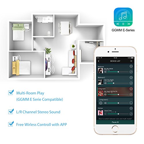 ✓[Multi-room Music System via Wifi]: Each Wi-Fi Speaker is part of a whole family of wireless speakers and also systems. If you buy two or more E5 or other E series speaker, you can connect them via home Wi-Fi to play different music in different room or play the same music in every room. Connect up to 10 speakers. Each speaker can stream L/R channels to create surround sound experience. Download "GGMM E Series" App from Apple Store/ Google Play to your phone and control speakers wirelessly.