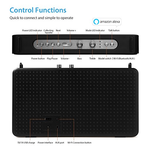 ✓[Wi-Fi/Bluetooth/Aux]: Connect directly to your Wi-Fi network for Internet radio, your music library and favorite online streaming music services like iHeart radio, Spotify. Connect via Bluetooth, direct Wi-Fi, Wi-Fi router, or AUX. Easily switch among separate audio sources and add up to 16 devices without disconnecting. Wi-Fi works over 160 feet.