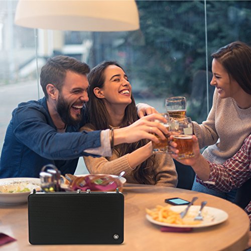 ✓[Amazon Alexa Voice& Hands Free Calling]: Amazon Alexa Voice Service puts you in full control of your surroundings. Simply press a button and ask Alexa to order a pizza, set a timer, play a song, and more. Connect your device to the E5 speaker via Bluetooth to enable hands free calling. With the press of a button, you have the ability to answer and hang up calls. With a built in microphone, you can speak towards the speaker without having your phone out.
