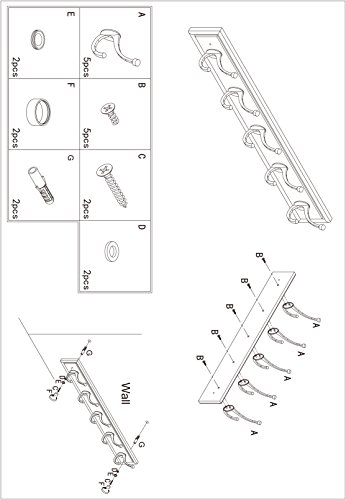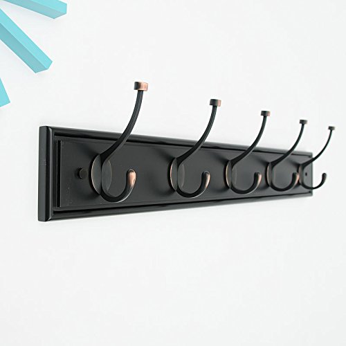 Pallamila KL60108 Beveled Hook Rack,Coat Rack, Wall Mount, Bamboo and Zinc Alloy (5 Hooks, 31.6 Inch, Dark)
