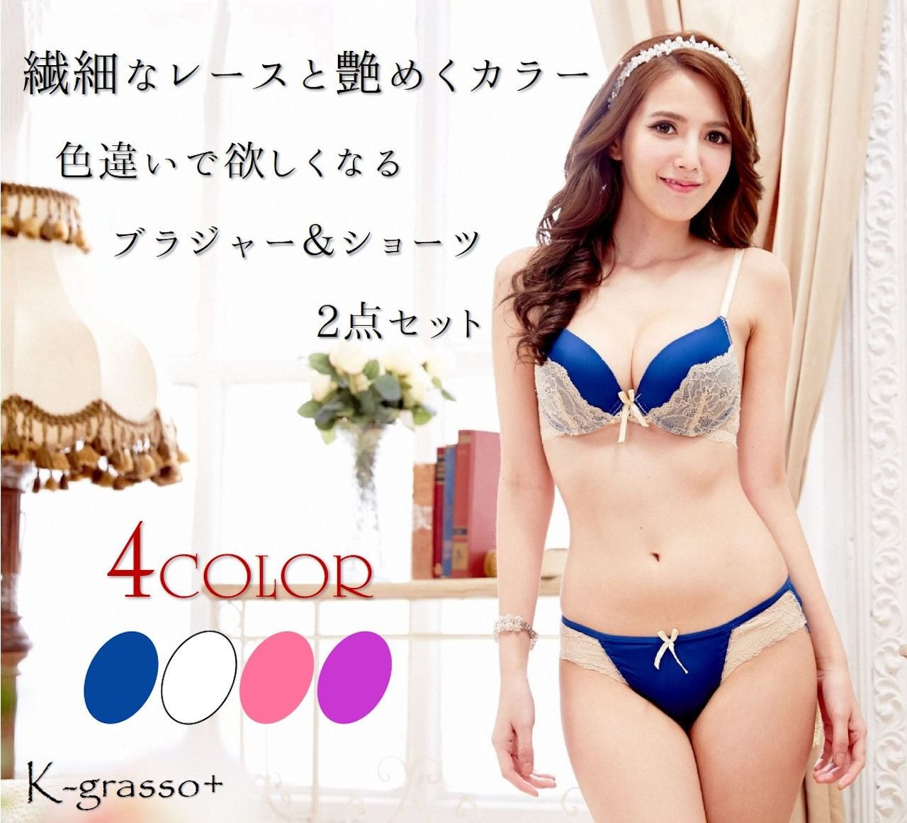 K-grasso + Ladies' Bra & Pants 2 top and bottom sets Sexy lace underwear inner
