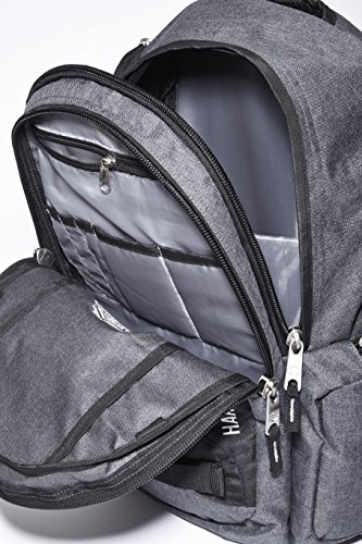 -. Feature : Constructed of high-density polyester / Padded laptop and iPad sections / Extra ergonomic padding on back for comfort / Two zip pockets, two zip sections / 14x10x18