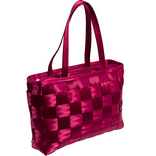 This Seatbelt Convertible Tote Bag by Harveys is a one-of-a-kind tote made from eco and animal friendly materials. The exterior is crafted from reclaimed seatbelts that have been woven together to make a tough and durable surface while the inside features a soft lining made from recycled plastic. A spacious interior features 3 large slip pockets, 3 small slip pockets, and a zippered pocket for all your storage and organizational needs. Measures 14" x 9.75" x 5".Feature