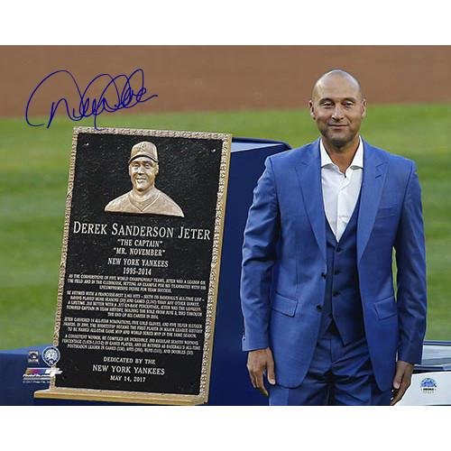 Derek Jeter Signed Yankees May 14 2017 Retirement Day Next to Monument Park Plaque 16x20 Photo