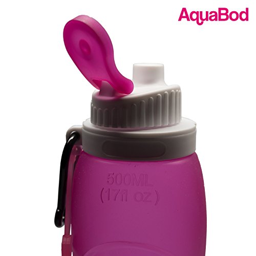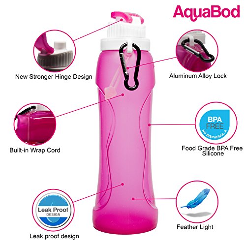 Sports Collapsible Water Bottle - BPA Free - FDA Approved - Leak Proof Silicone Sports Bottle - Aquabod (Pink)