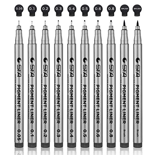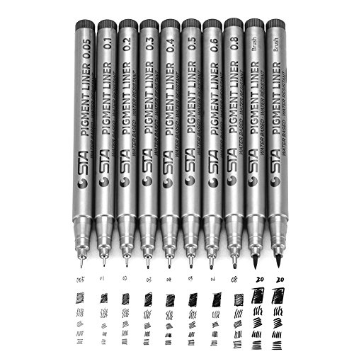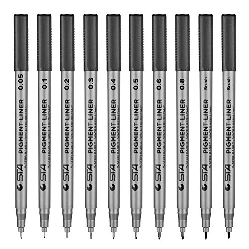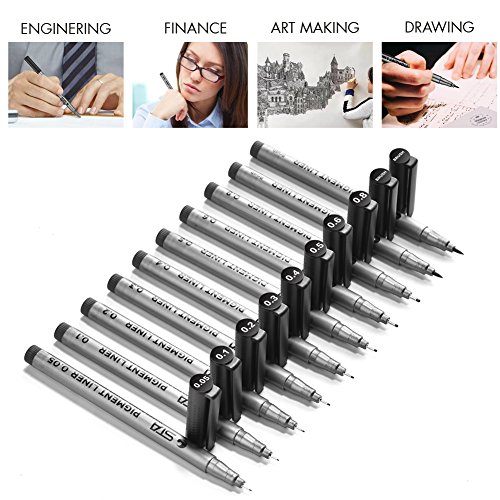 - 【Set of 10 Micro-pens】: This set contains 10 Black Multiliner pens with 0.2mm (005), 0.25mm (01), 0.3mm (02), 0.35mm (03), 0.4mm(04), 0.45mm (05), 0.5mm (06), 0.6mm (08), 2 Brush tips. No Matter how you want to Draw,we have the right tip.