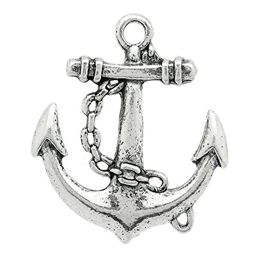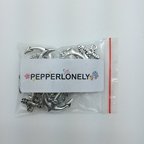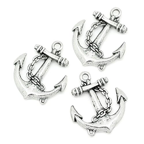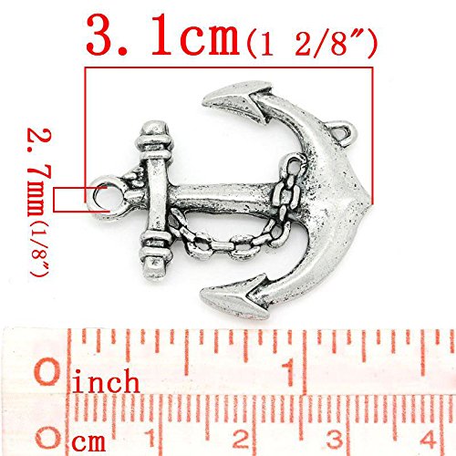 PEPPERLONELY Brand 10PC Antiqued Silver Anchor Connectors Charms Pendants 31x27mm (1-7/32x1-1/16 Inch)