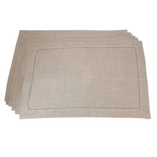 -. Title : Cathy's Concepts Linen Hemstitch Placemats, Natural, Set of 6