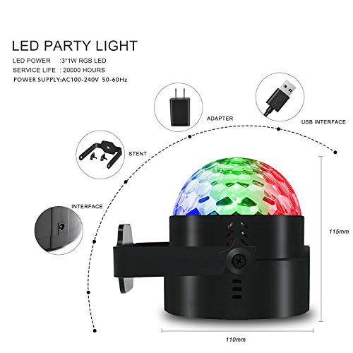 Aomees Disco Ball LED Party Lights Strobe Light 3W Sound Activated Dance Light Stage Light DJ Lights for Home Xmas Halloween Kids Birthday Party Decorations Karaoke Bar Club Outdoor (with USB)