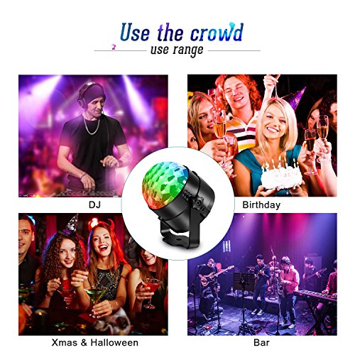 - Easy to Use: AC + ABS material disco lights can illuminate 10-15 square meters of the room. You can put it on the table directly or use bracket install it on the walls and ceiling, and also hang in the beam to use and so on.
