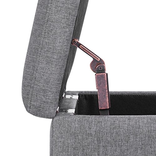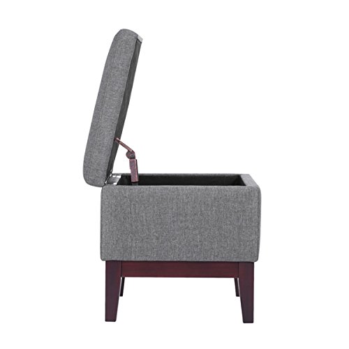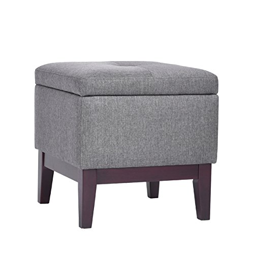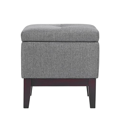 -. Title : Grey Fabric Square Storage Accent One Button-Tufted Ottoman Bench Wood Legs