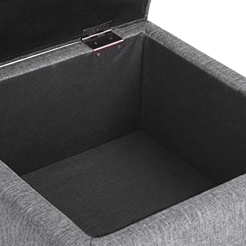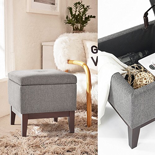 -. Feature : Color: Grey / Material: Fabric and Solid Wood / Features One Tufted-Button Top / Ample Storage Space / Dimensions: 18 inches high x 18 inches long x 18 inches deep