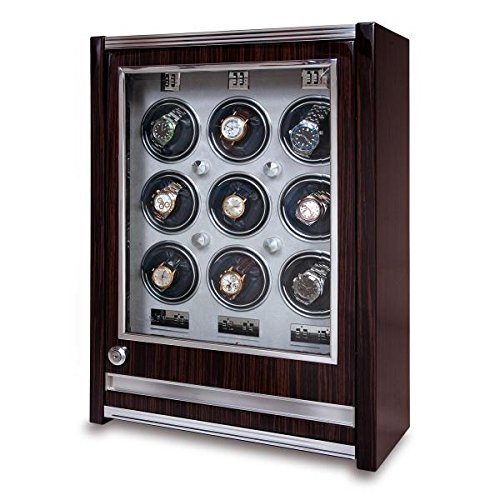 -. Title : Rapport London Paramount Macassar Wood 9 Watch Winder w/ Glass Door