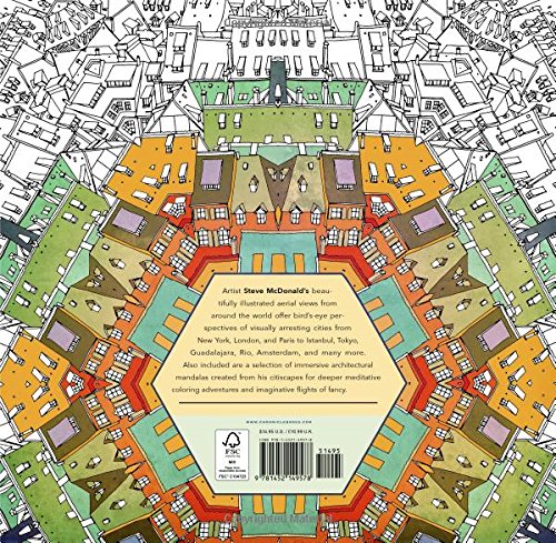 This unique coloring book features immersive aerial views of real cities from around the world alongside gorgeously illustrated, Inception-like architectural mandalas. Artist Steve McDonald's beautifully rendered and detailed line work offers bird's-eye perspectives of visually arresting global locales from New York, London, and Paris to Istanbul, Tokyo, and Melbourne, Rio, Amsterdam, and many more. The adult coloring book's distinctive large square format offers absorbingly complex vistas to color, the crisp white pages are conducive to a range of artistic applications, and a middle margin keeps all the artwork fully colorable. Complementing the cityscapes are a selection of mind-bending labyrinthine architectural illustrations for still deeper meditative coloring adventures and imaginative flights of fancy.Feature