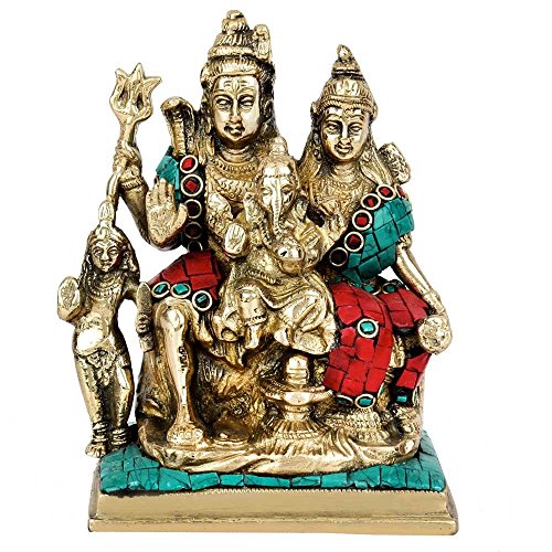 Statuestudio Brass Lord Shiva Parivar Statue Inlay