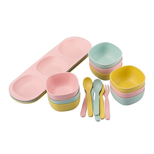-. Title : Hombae Bamboo Fiber Baby/Toddler Feeding Bowls with Spoon and Fork Set, 6PCS, BPA-FREE, Pinch Bowls, Multi-Colors